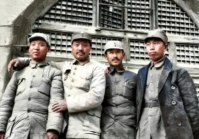 图中这身打扮叫灰棉军装,粗布面子加棉胎,袖口起了硬茬,扣子有新的有补的,帽檐压得低,站在窑洞门口一字排开,胳膊随手往战友肩上一搭,笑不笑无所谓,神色里有股笃定,我外公看见这类照片就说,冬天风从梁上灌下来,棉衣不算厚,靠人挤人取暖,扛得住的就算一条好汉。