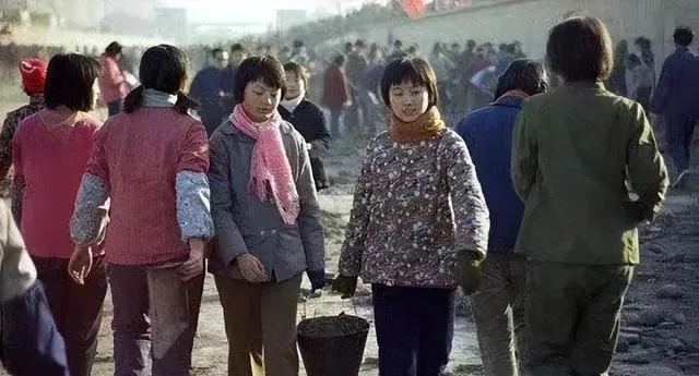 这个场景是开学劳动,铁桶木把,挎在手里走两步就磕到鞋面,操场边要先清沟再填坑,泥土一铲下去冒着潮气,女生把围巾拢到脖子跟前,小声嘀咕别弄脏了新衣服,老师在前头指着分工,谁去挑水谁去运土,热闹得很,到了现在,校门口多是接送车,整齐干净也好,当年的那股泥味儿却不常闻到了。