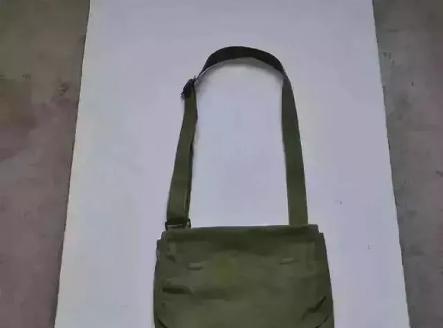 这个绿色的叫军挎,布料结实,扣子一叠就严丝合缝,背带勒过肩窝走久了会印一条痕,书本装进去有股淡淡的布味,雨天回家路上护着袋口一路小跑,土路上我们几个人抄近道,脚后跟踢起泥点子,谁的军挎要是被甩到沟里,回家少不了挨一句,东西顾上点,明天还得用呢。