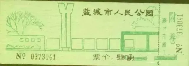 盐城市人民公园的门票,票价四角,在那时也舍不得去逛。现在好像门票免费了,只是里面有的项目要收费。