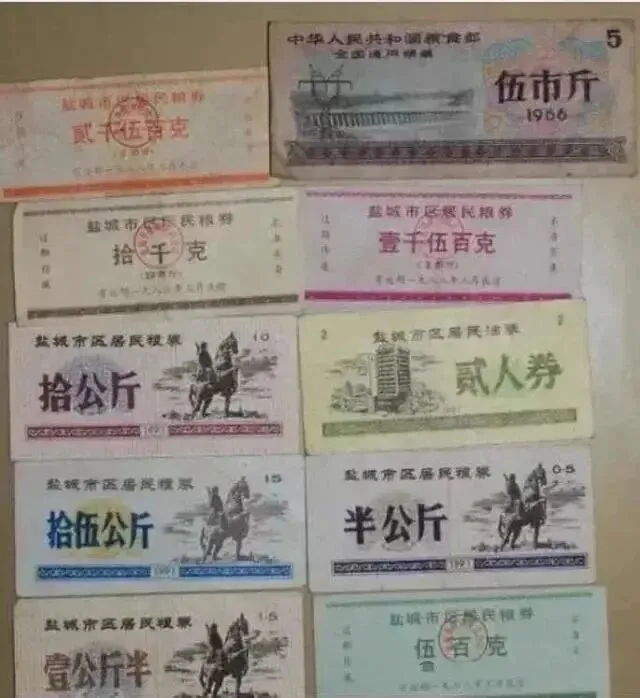 盐城的粮票、油票,只能在盐城境内使用,出盐城需要全国或省的粮票、油票了。