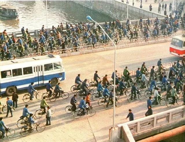 这阵仗叫自行车大军,二八大杠一路“哗啦啦”滚过去,铃铛“叮铃”一下就能让出一条道,桥上风硬,衣角被吹得直抖,公交车慢慢跟着,谁家要借车,门口递钥匙一句“别太晚”,现在车子多得很,可那种整齐的踏频和铁圈碰地的小声响,再难听到了。