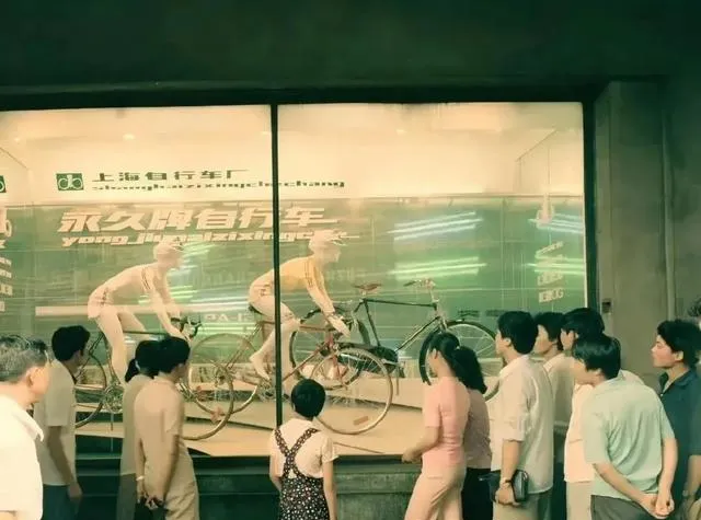 人都挤到玻璃橱窗前看永久牌自行车,灯管绿油油地闪,车架亮得见人影,售货员把车推到正中一摆,围的人咽口水不藏着,叔叔贴着玻璃嘀咕“要是能分到一辆就好了”,那时买车得票,回家要在桌上掰着指头算几次,今天满大街共享车随手一开锁,真方便,可也不再为一件新东西盼上半个月了。