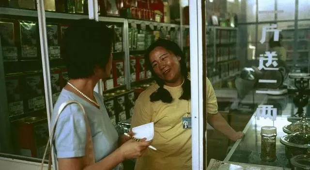 这张是副食店的玻璃柜台,白底黑字写着斤送二两,柜里是一排一排的铁罐子和秤砣,掌柜大姐穿着短袖笑嘻嘻,顾客举着小本儿记账,奶奶说那会儿会过日子,票也有账也清,米面油都要拿着算盘走一遍,现在扫码一下就结了,手心里那点沉甸甸的分量也就轻了。