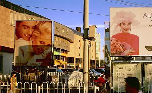 这块路口立着两面灯箱,模特笑得亮,玻璃栏杆后头是一排自行车,风把纸张边缘吹得哗啦啦响,朋友指着说看,新世界来了,钱包却瘪瘪的,只好把口袋里唯一的照片塞回去,现在广告从手机里往脸上扑,那时走到牌子底下一站,心里就开始打鼓。