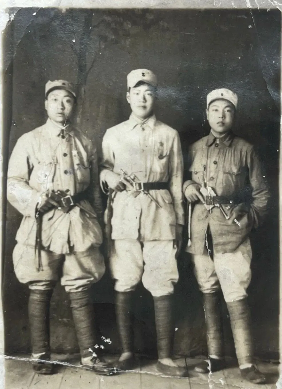 这是一张十分珍贵的历史照片,三位八路军战士胸挂军功章、腰别驳壳枪,飒爽英姿,或因为立功受奖、或三人战友情深,1946年2月在辽宁开原摄下珍贵一瞬。