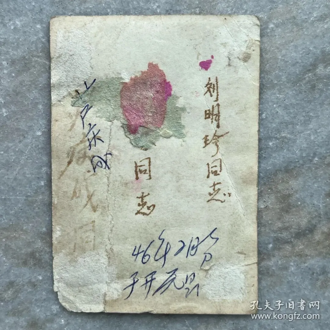照片的后面留着三位人物的姓名,现在只能看清楚两位,分别是刘明珍、芦庆成。
