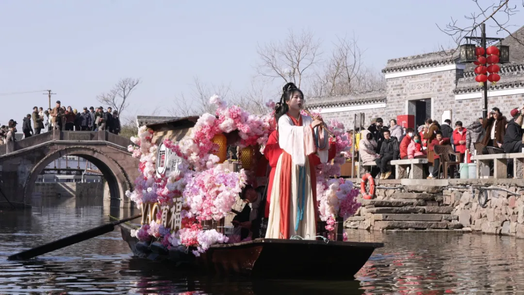2025年鸣鹤古镇举办迎新春花船水上巡游活动