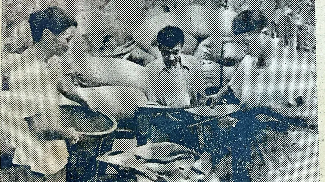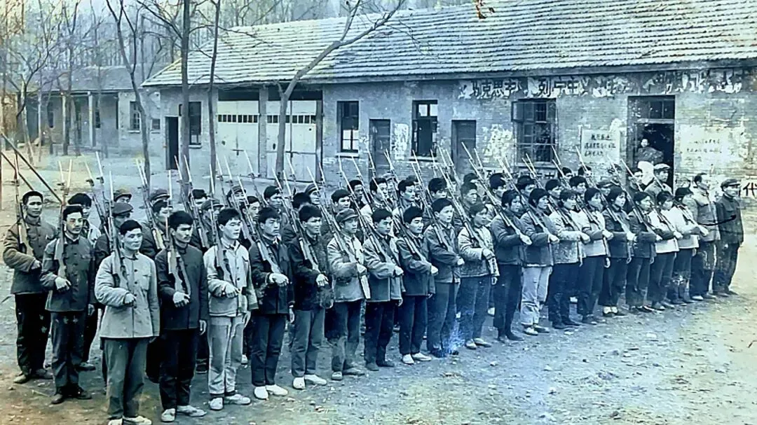 这组珍贵的老照片拍摄于上世纪七十年代末,拍摄地点可以清晰地看到在汉南农场场部操场,(现在的街道群众大舞台),民兵身后那排红砖结构的平房应该是场部食堂。照片中这支精锐的民兵队伍约50余人,由各大队劳动积极、思想政治素质过硬的优秀青年组成,他们手持钢枪,斗志昂扬,仿佛时刻准备战斗。(据湘口街道康泰路社区居民王敢传介绍,民兵肩扛的是75式半自动步枪,为了安全起见,训练时枪内没有子弹,只有在打靶时才分发子弹)