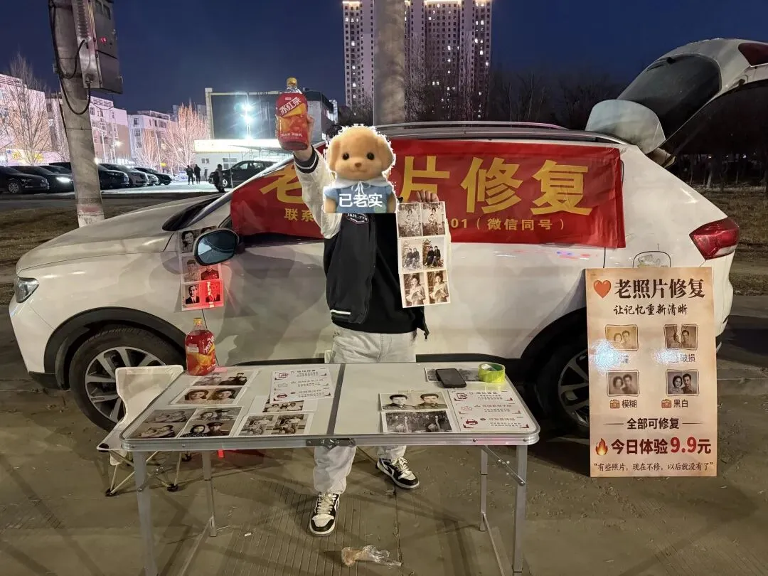 但今天逛帖子的时候,发现一个博主竟然将AI老照片修复通过摆摊的方式做到了线下,并且真真实实赚到了钱,他的做法很简单:自制一个