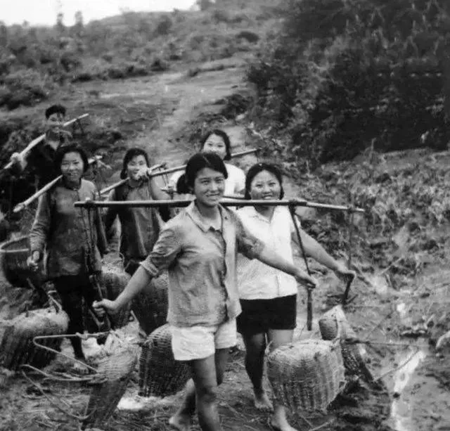 肩挑大箩筐,裤脚挽到膝盖,一串女孩顶着大太阳走田埂上,皮肤晒得黑呼呼的,嘴里唠着才从城里学的新词,大家抢着挑重活,知青岁月没得选,都是干苦力长本事,现在再问谁还敢打赤脚正午干活,可就难咯。
