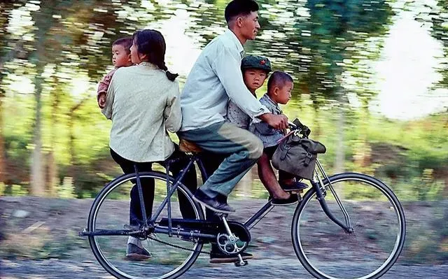 一家五口挤上自行车,爸爸拎着把手,两个娃儿夹在前后,四只手拖着小包,妈妈在后边抱娃**,这一辆车子骑遍半个城镇,逢年过节走亲戚,全靠它撑场子**,小时候觉得骑自行车就像飞一样厉害。