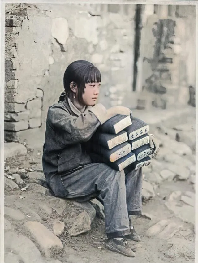图里这个衣裳宽大的小姑娘,整个人缩在屋檐下的影子里,手里死死抱着一摞枕头,旧布包着,棱角清楚,枕心鼓鼓的,冷风一吹,袖口埋得深深的,神情蔫巴,不知道是在等人还是自个默默发呆。枕头头上还画着细细的小字,估计是家里人一针一线绣上的标记,盯着看久了,脑子里总有逛城隍庙、软塌塌的棉被和姐姐团着膝盖睡午觉的画面晃过去。那会儿挣钱不容易,年纪小小的就跟着大人学会操持,没几个人真把自己当孩子宠。
