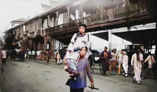 街头一幕:年轻姑娘坐在男人肩头,男人顶着往前走,身边路人都是随手一瞥,没人多看一眼。这种出行方式,听老人讲是那个时代“青楼女子”专属,出门靠人抬,图的是体面,其实都是身不由己的日子,人活到了这一步,哪还有自尊可讲。