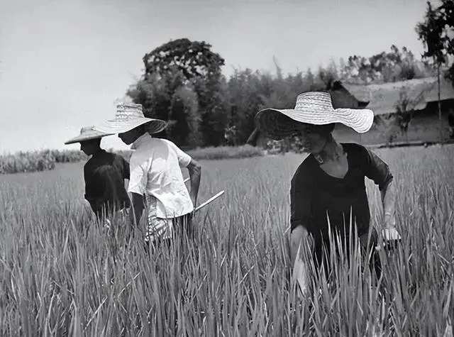 稻田间全是戴草帽的,手脚都沾满泥,谁家没拔过草施过肥,站在水田一转身,背后就是青山庄舍,夏天一头汗全流进脖子里,碰上下雨天只能往帽檐下缩,左邻右舍远远打招呼,大家恨不得把庄稼拉回屋,手里的镰刀闪银光,收割时全靠这点家伙。