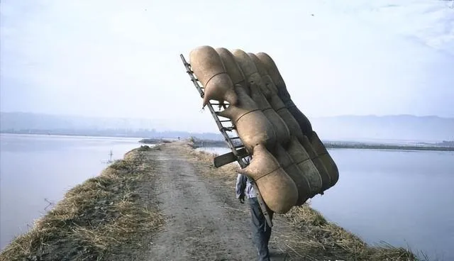 图中这桩家伙常见在江边和河道,一排排鼓鼓囊囊的圆物撑起来,叫猪皮筏子,村里大人小孩能搬动的都上过,手工刮净毛,熬过油水,背上绑着绳子和木架,一下河,全靠它托着,小时候看见这样的大阵仗,总觉得神奇得很,爸爸总说谁家要是有条筏子,赶上洪水都能派上大用,气味是那种混着皮革和泥水的腥鲜味,小伙伴们在水边拍两下,就敢往上蹦,晃来晃去还嘻嘻哈哈闹,这场景现在只在老照片和脑子里找得见,城里娃哪还能知道,猪皮能漂一船人,不比现在游乐场假山假水有意思多了。
