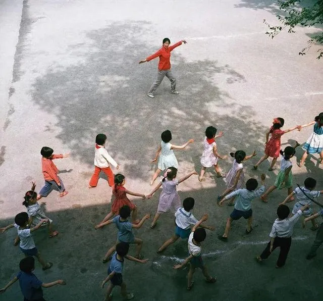 院里老师穿条大红衣服,带着一群孩子做动作,整齐划一,队伍扭成麻花,小脚丫子齐刷刷踏地,教室走廊堵得水泄不通,谁都盼着早点轮到自己领操,老师喊口令,孩子们嘴上答应,心早飞到下一个游戏上,那时候心很单纯,生活简单,快乐也很容易得来,现在园里的晨练改成了录音机和电子琴,哪还有这么真切热闹的场面,老童谣还记得,队伍却越走越散了。