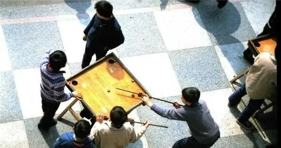 这个方桌就是康乐棋桌,四角插木腿,中间一颗母球,孩子们拎着细细的木杆当球杆,咔嗒一声把子弹珠打进洞,放学铃一响全挤过来,谁输谁把桌面擦干净,这规矩现在的小朋友听着都新鲜。