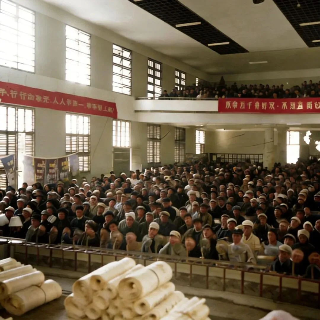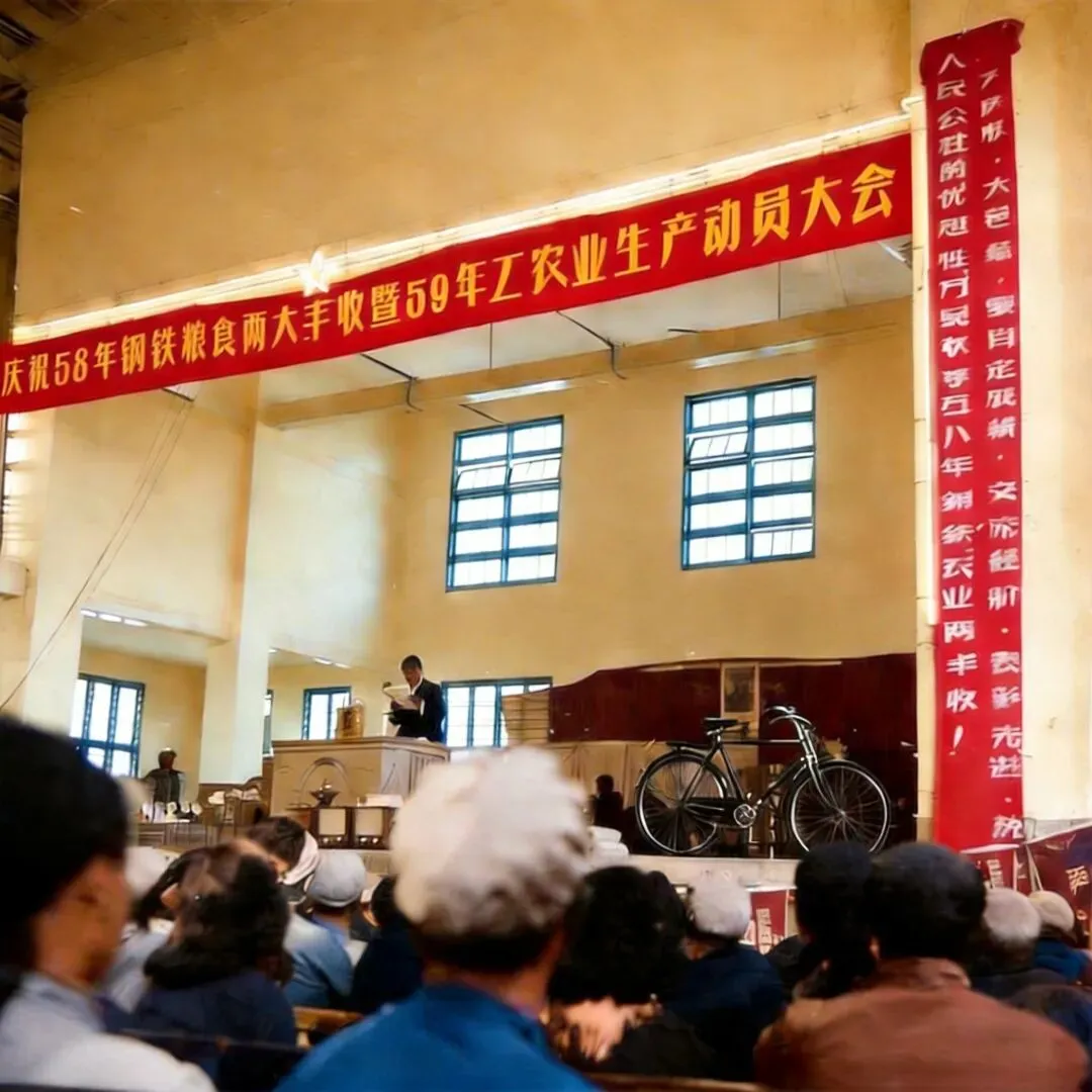 1958年巴马人民礼堂刚落成的外貌(横幅上的这些字原照片是模糊不清,很难辨认,我查了一些资料后补上去了,应该也大差不差的。)↓2018年,就在这座大礼堂刚好一甲子的时候。拆出了。。
