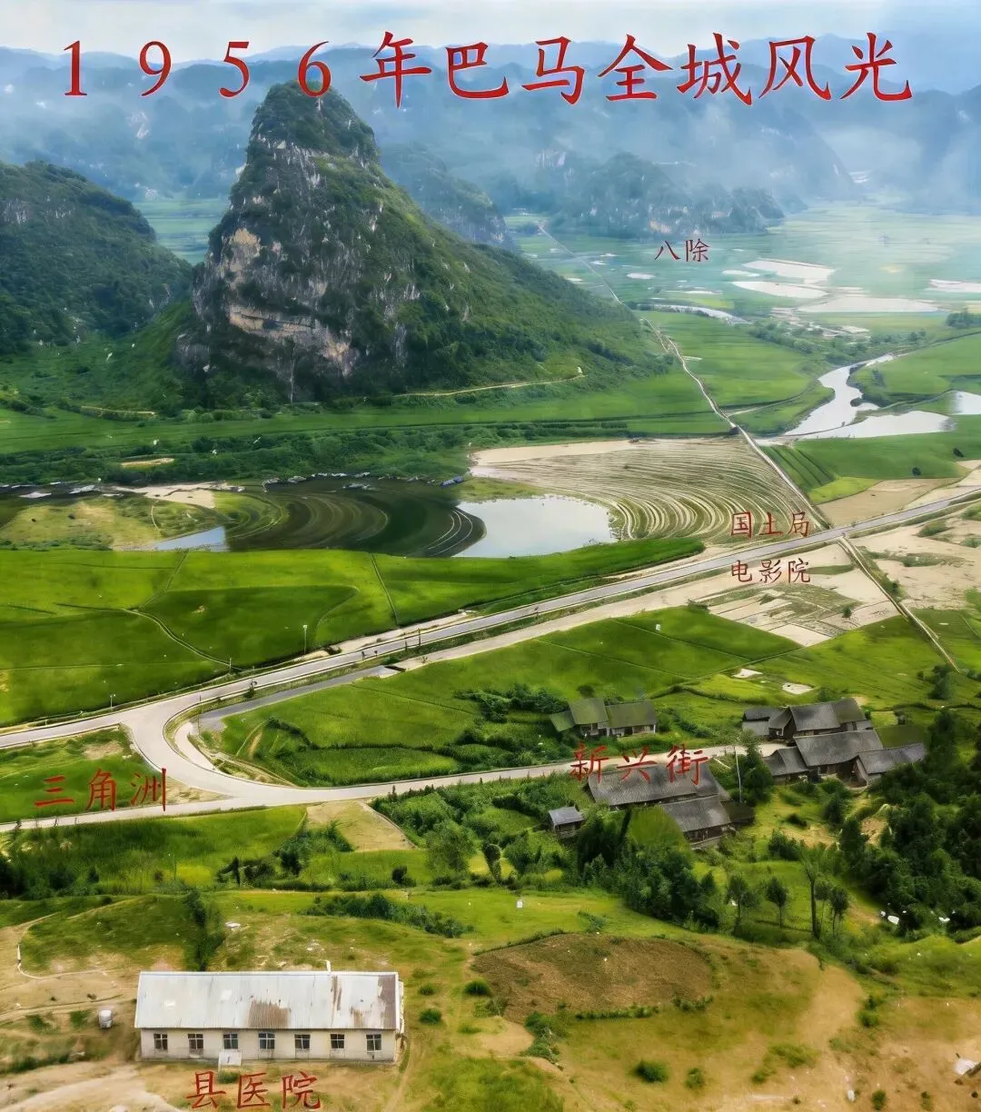 70年代时的巴马县甲篆公社,甲篆地处巴马县西北部,2013年撤甲篆乡设甲篆镇。↓巴马瑶族自治县隶属广西河池市,地处桂西北喀斯特地貌区,县域面积1976.42平方公里,下辖3镇7乡。2025年户籍人口29.87万,聚居瑶、壮、汉等12个民族,少数民族人口占比超过80%,民族文化浓郁,是典型的少数民族自治县。