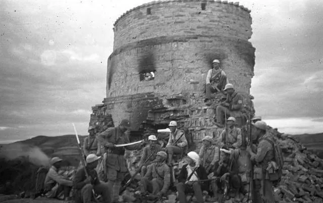 一座残破的堡楼下,一帮战士就坐在落砖堆上,有刚打完仗的,有准备下一轮突围的,戴头盔的、包着白布的混杂一起,照片里没有假笑,全是憋着劲儿的样子,这种场景,用现在的话说就是“打完仗也得照顾伙计”,有啥吃啥,困了就席地而卧,真正在阵地上能聚一块的,情义和命都绑一起了。