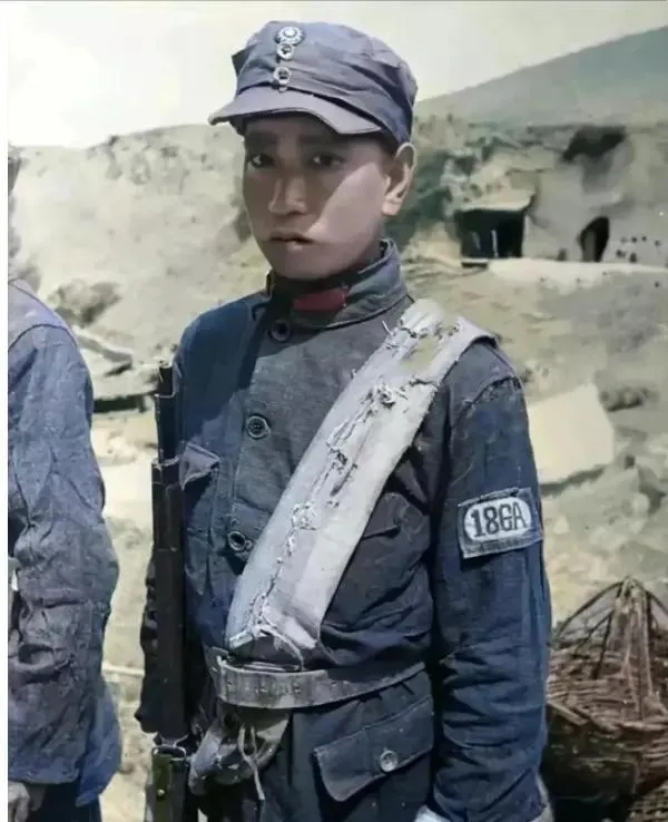 这个穿着皱皱巴巴军装的八路军叫真八路,袖章上“18GA”刺得清清楚楚,肩带早已磨出麻花,领扣也是随手一拉,脸上带点倔劲儿,嘴紧抿着,剧里全员西装似的扣子都系齐,其实那个时候谁还分什么端不端庄,能挡风遮寒就行,爷爷看了都说,这一看就是天天摸枪的练家子,不用多说。