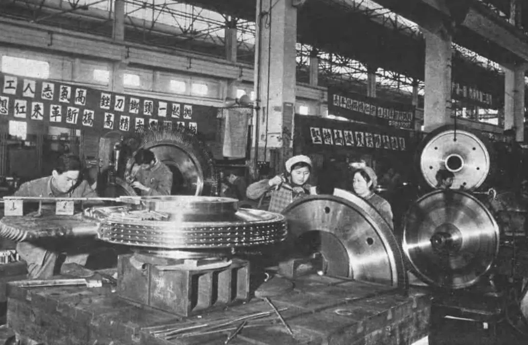 上海汽轮机厂汽轮机车间,人人动手,各个献计,新中国的妇女们顶起了半边天