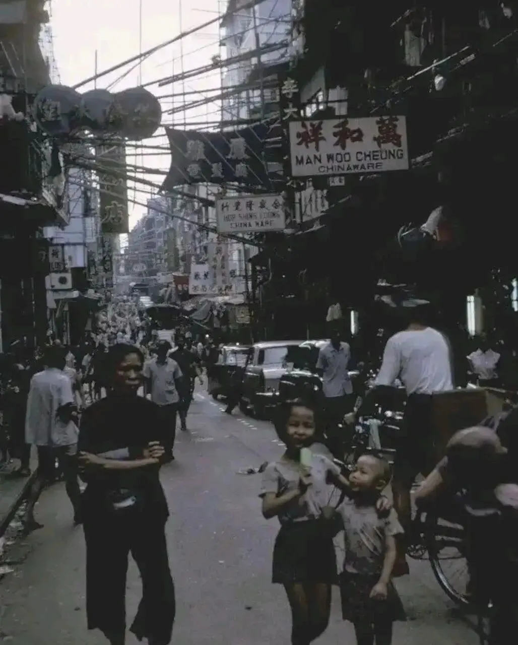 1965年的香港正处于经济起飞的阶段,人口密集,商业繁荣,这张照片生动地记录了当时普通香港市民的日常生活,与同时期的现代化高楼形成了鲜明对比。