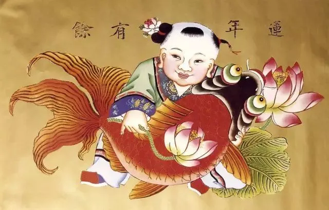 一个小胖姑娘或者小胖小子抱着个大鲤鱼!