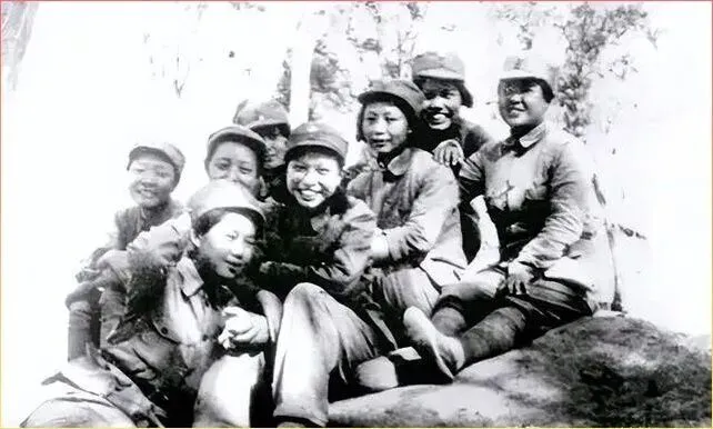 这组女战士的照片更.让.人.动容,姑娘们扛着长枪.,.脸上.冻得通红,棉.衣裹得严.严实实.。那个年代的女孩子,本该在家里做针.线活儿,可.她们却选择了扛枪上战场,和男同志并肩作战.。