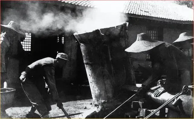 这张照.片记录的是后.方生产的场.景,浓烟滚滚中,.战士们.正.在炼制什么东西。没有现代化的设备,全.靠最原始的土办法,.自己动手解决.武器弹药问题。那时候的口号自.己动手,丰衣足食,.可.不是说着玩的。