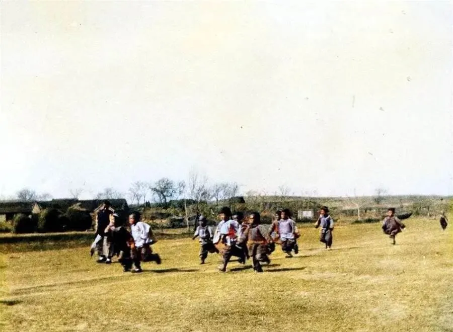 这群小子玩的是拉练跑,衣裳宽大,裤腿挽到膝盖,风一过,全是草腥味,他们一边喊号子一边追,谁也不肯让步,老师在远处举手示意,喊着“别摔了”,现在的孩子在塑胶道上拼秒表,那时候一块空地就够热闹了。