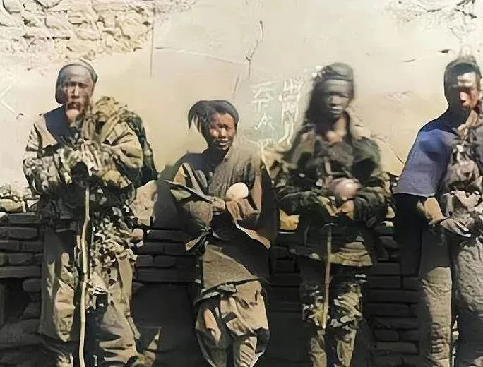 这一排人手里捧着的是讨食碗,粗陶坯子,边口有磕痕,衣襟全是结,风把麻绳末儿吹得乱舞,墙上粉灰剥落,几个字看不全了,他们靠墙站着,眼神躲躲闪闪,路过的会往碗里丢个窝窝头,现在说起流浪者,有救助站和热线,那时候靠的是路人的一念之仁。