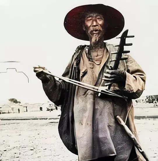 这个弯着的木器叫二胡,蛇皮面,细竹弓,弦上抹了松香,老汉一手攥着把位,一手拉着弓子,帽檐宽得能挡半边脸,他边走边拉,音儿发紧却不撒吊,凑近了能闻见汗和尘混在一起的味儿,可那股子顽劲,真让人服。
