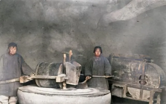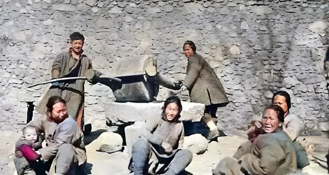 晚清老照片:光绪妃子们天姿国色,小脚妇人推石碾,地主炕头数钱。