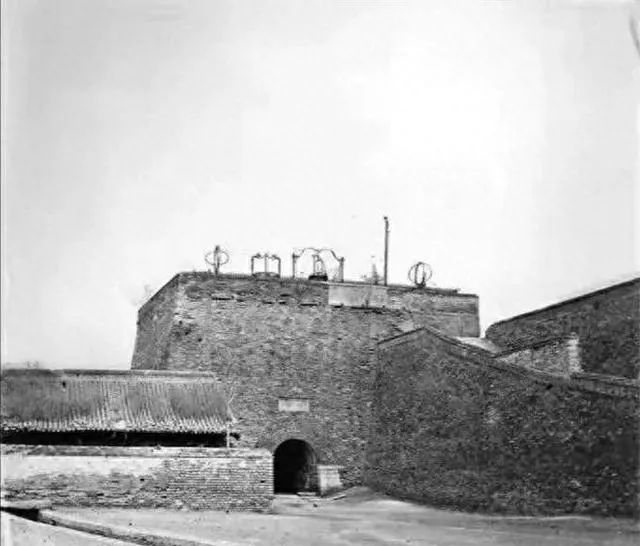 这个高台子就是古观象台,顶上铁器结着圈,像画在天边的一排字,小时候我第一次见老照片,就被这几根铁环勾住了眼睛,另张里残破的城门砖眼子露风,街面乱糟糟的摊子挤成一片,那时候守城靠人,跑买卖靠腿,现在一条地铁穿过去,城垣的影子只剩在书里。