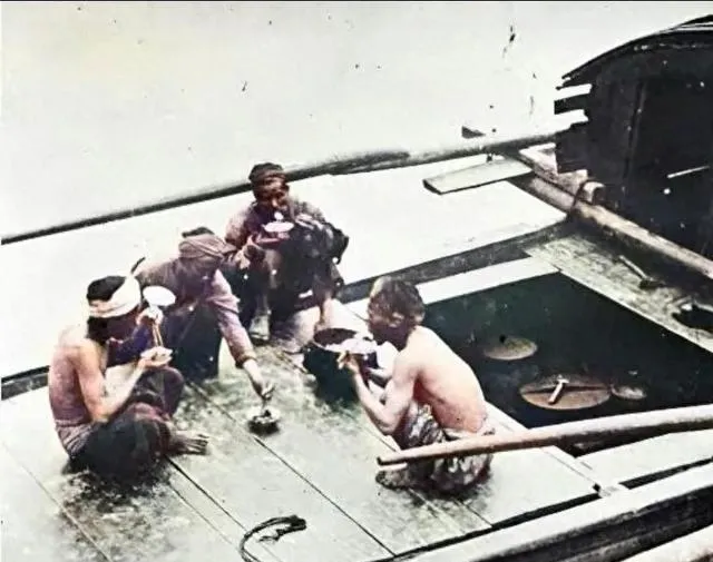 这几碗白饭和热汤摆在甲板上,男人们席地而坐,筷子一拨一拨,锅盖在一边冒着气,谁也不说累,吃完再撑篙,日头落下去,水声把白天的事都带走了。