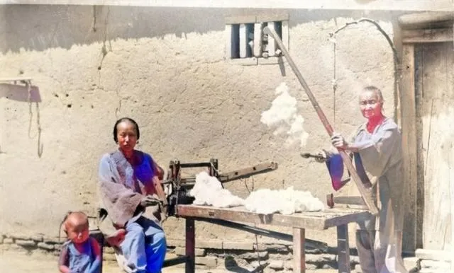 这张院子里的家庭合影,小孩坐在中间,左右大人神情各异,花盆排得齐,像特意摆给镜头看的,另一张一群人把脸凑进镜头,围着看新鲜的相机,笑里带着好奇,末了是弹棉花的架子立在墙边,弓弦一抖,棉絮飞起来像下小雪,娘说那会儿做被子得趁晴天,请师傅来一敲一翻,晚上就能压着新暖被睡觉,现在一床被芯网购回家,拆袋子就铺上了。