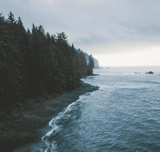 这条海岸线阴云压着海面,浪头不算大,却一股一股拍着黑色卵石滩,杉木像一队不说话的士兵站在崖上,风贴着耳朵过去,咝咝的,这一幕和上面的人事无关,却叫人想到命运的潮涨潮落,退也押着节奏,进也别太得意。