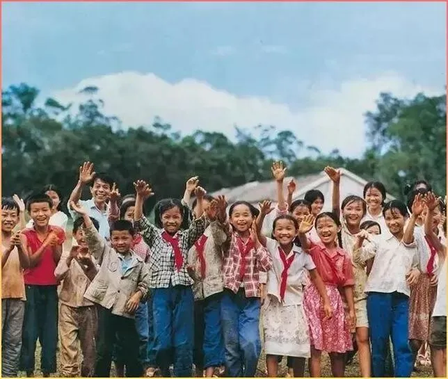 这群孩子脸上洋溢着.的笑容,是现在多少.钱都买不.到的纯真。那.时候的农村学校,一间.教室,一块黑板,一位老.师,就是全部的世界。孩子们穿着打补丁.的衣服,却个个笑得那么灿烂,举起的.小手里,攥着的是对知识的渴望,.对未来的憧憬。那个年代的快乐,不需要.玩具和零食,只需要.小伙伴们在一.起。