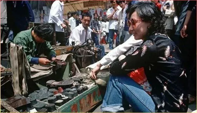 修鞋摊前.的这.一幕,是不是唤.起了您的记忆?穿着.时髦的年轻人,蹲在路边等师傅.修鞋.。那时候一双鞋能穿好几.年,破了补.,补了再穿,.舍不得扔。修鞋师傅手艺精湛,不管.多破的鞋,.到他手里都能.修得像新的一样。现.在的年轻人可能无法理解,.一双鞋怎么能穿那么久,可在当年,这就是生.活常态。