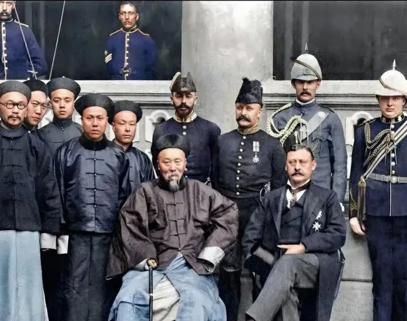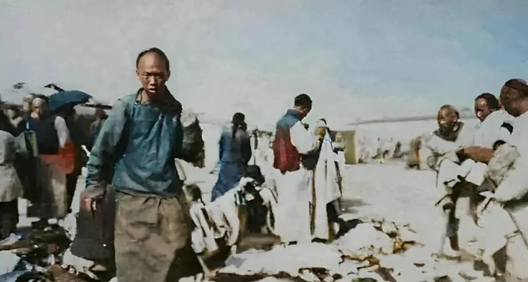 清朝彩色老照片:二手衣摊贩;驿站的驿卒;北洋海军官兵们合影;邓世昌与洋人教官合影。