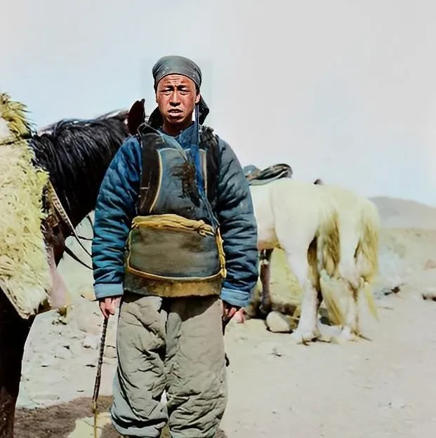 这个系着粗绳、靠在马鞍旁的汉子叫驿卒,冬天里的皮背心鼓鼓的,里头塞了棉絮,边沿起了毛,裤腿厚得像铲地的草包,他手里握的不是棍子,是条习惯了的赶牲口鞭,短短的,抽不狠,却能把马从冷风里唤醒。