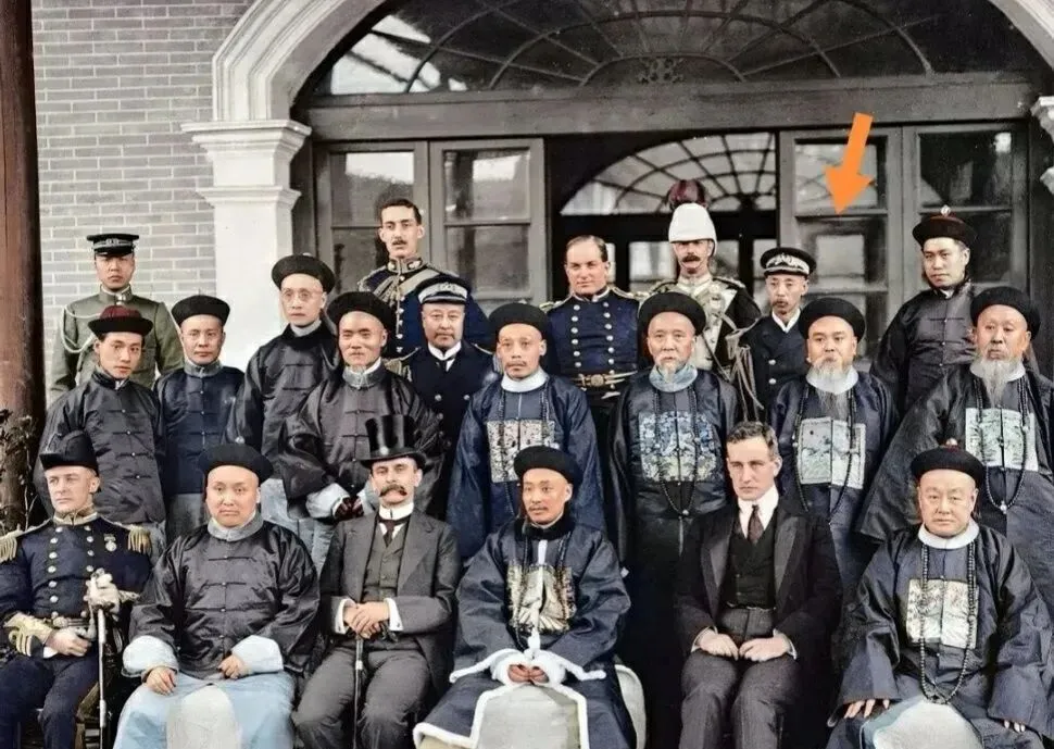 再看屋檐下那两张合影,绸袍团领一水儿深墨,胸前方补花团锦簇,坐着的站着的都不慌,领子硬,表情更硬,中间混着几位洋官,金线绕来绕去,肩章闪得扎眼,镜头按下去的一瞬,大家都端着,可人和人之间的缝,还是能看见,妈妈看照片笑,说以前上台面讲排场,现在上镜头讲信息,你别笑,规矩总要有人撑着。