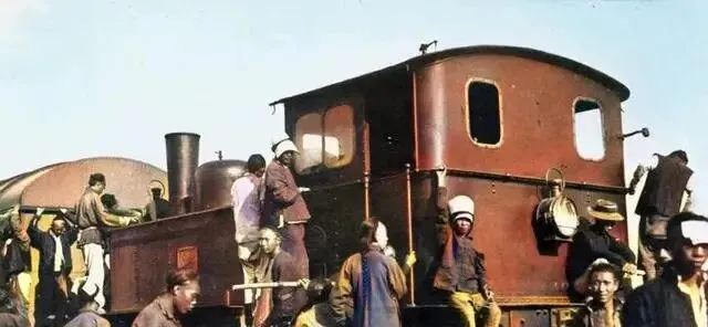 图里这台矮胖的蒸汽机车,像一头喘粗气的铁牛,车顶爬满人,车窗里也塞满人,锅炉铆钉一颗颗顶着光,梯子上挂着布包和水壶,男人撅着屁股往上攀,女人拎着孩子的后襟不松手,开车的哨子一拉,尖利的声音钻人耳朵,我就想起姥爷讲的那回逃荒,说一上车先找烟囱后边的位子,风顺着走,煤渣子落得少些,现在坐高铁讲座位号,以前上这玩意儿讲命大的位置。