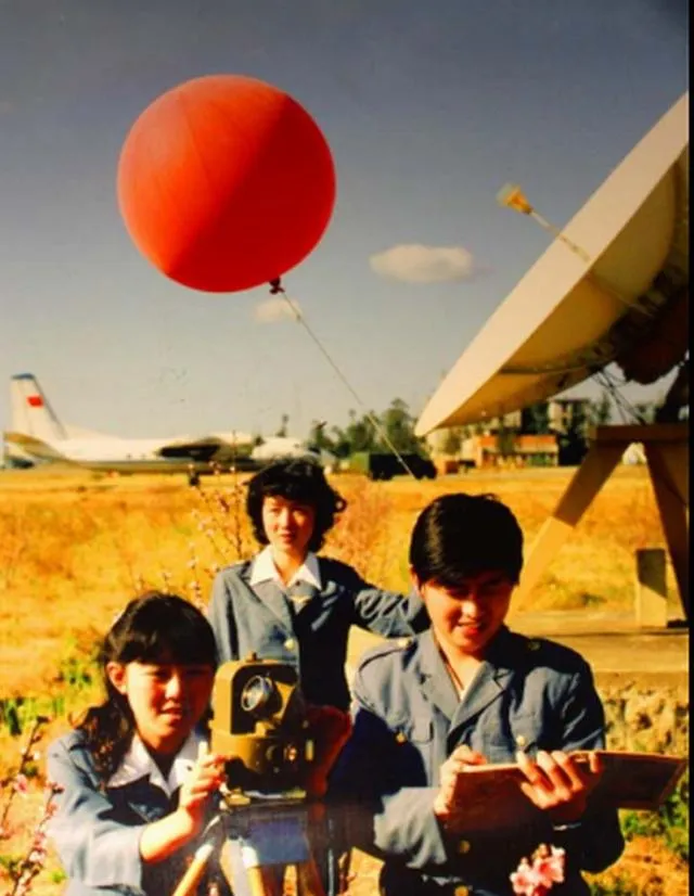 这张里红彤彤的气球,天上飘着少年团员一脸正气,三人穿蓝制服拿仪器,田野里风大,后面是一架停在机场的老飞机,小时候最快活的事就是追着放风筝,春天院子里扎好的气球拿回班级分,风一吹困在树上,男孩子女孩子一起跳着去摘,气球能拿着玩大半天,上头只写着四个大字“科学实验”,现在孩子们的飞机气球啥样没个新鲜劲,那份手工乐子却真见不到了。