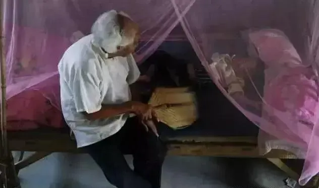 床边老爷子坐在蚊帐里扇着蒲扇,孙子孙女躺在席子上迷迷糊糊,老花灯罩掩着昏光,爷爷一边讲故事一边驱蚊,蒲扇挥着浮尘都卷走了,奶奶在一旁絮叨:“再扇会,这孩儿夏天就怕捂着挨蚊子咬”,现在孩子们空调一开到天亮,扇子和家人絮语一并淡了。