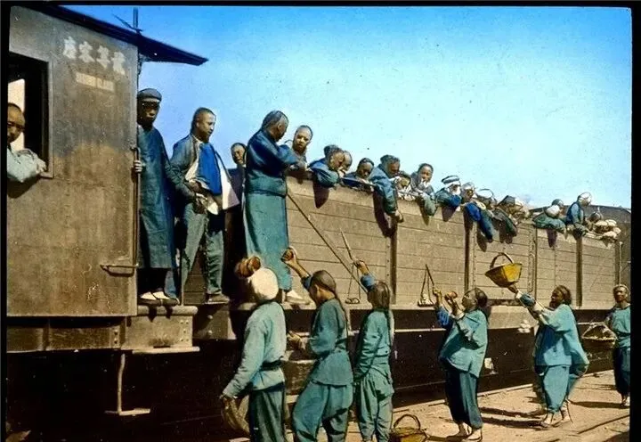 照片里那根长杆子末梢挂着小桶,叫吊桶,专给列车窗户边的人递水递稀饭,杆子抬稳,桶口要对着手心接过去,别晃翻了,做活的阿姨一口一口喊价,手上套着蓝布袖套,走南闯北的车一响,生意就跟着响,现在动车过站两分钟,连个影子都不等,一切都准点,水却淡了点人味。