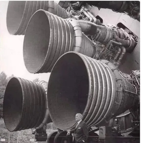 图中这几个像大铁碗的家伙叫推进器喷管,肋纹一圈圈的,金属灰发冷,边上管线像血脉一样缠着,站在下面的人被衬得跟火柴棍似的,这玩意儿点起来的劲儿,能把几千吨钢铁硬生生抬离地面,爷爷看见这种图总要感叹一句,以前仰头看流星许愿,现在工程师把愿望焊在图纸上了。