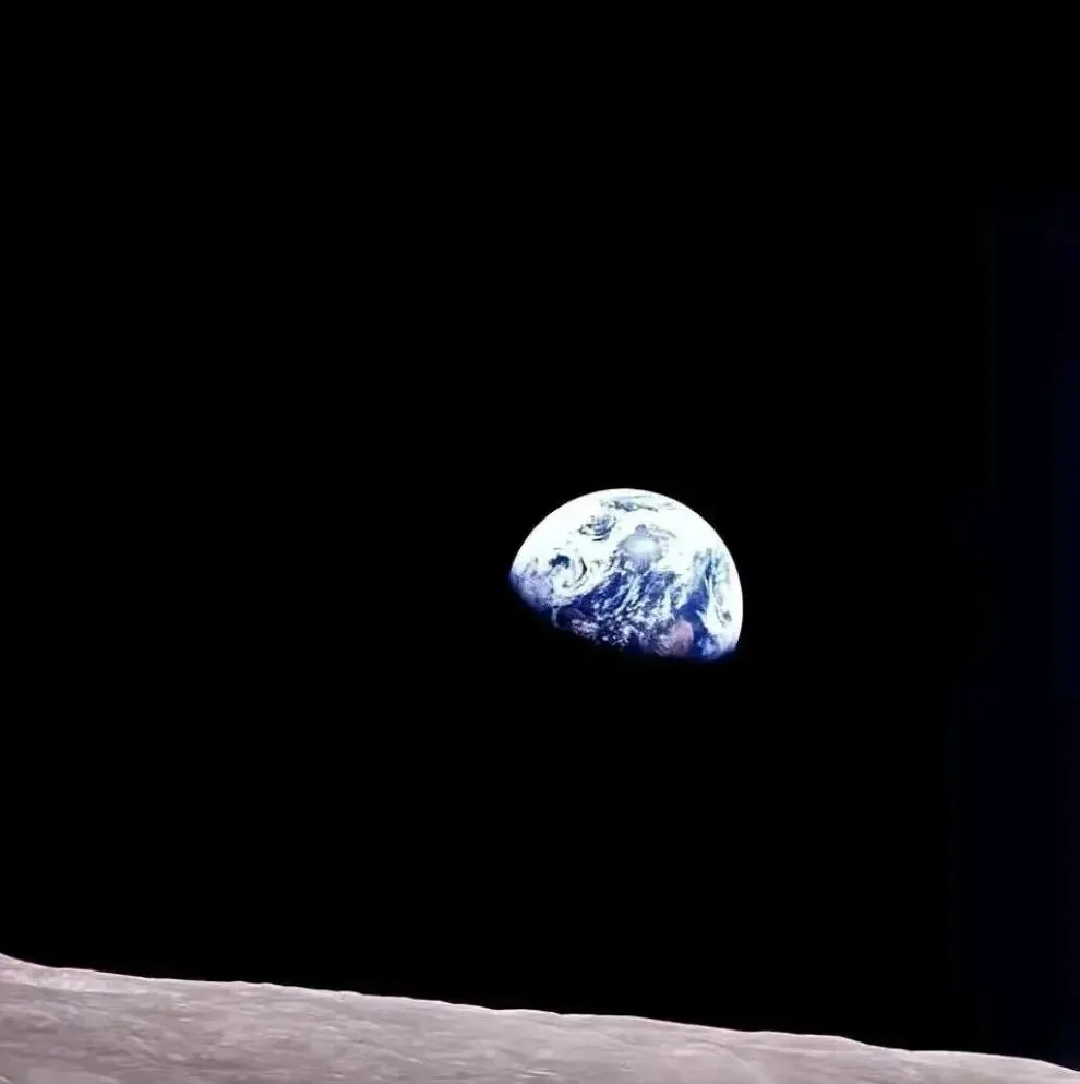 这一张叫地出,黑得发亮的宇宙像挡风的幕布,地球露半张脸,蓝白像旋起的奶油,小时候我以为到了月亮上地会顶天大,现在才知道,隔着三十八万公里,看故乡也不过巴掌大一团光。